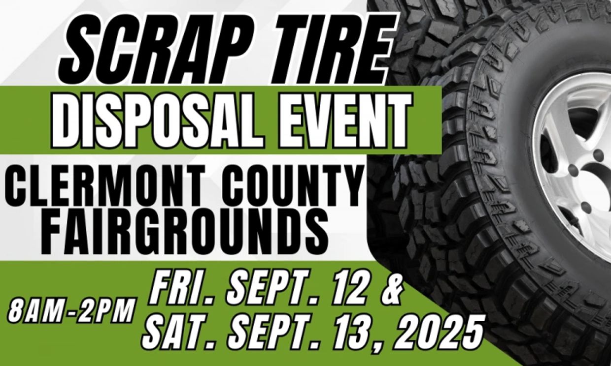 The Adams-Clermont Solid Waste District will be hosting a scrap tire collection event on Friday September 12 and Saturday September 13, 2025 at the Clermont County Fairgrounds in Owensville.